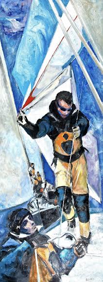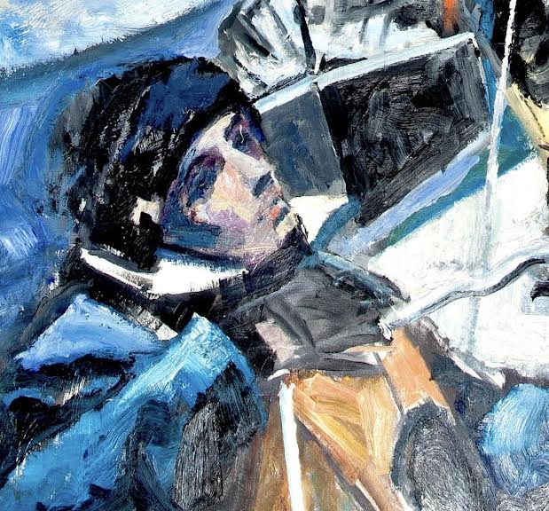 Original 30 x 80" Oil on mahogany Door panel by Willard Bond